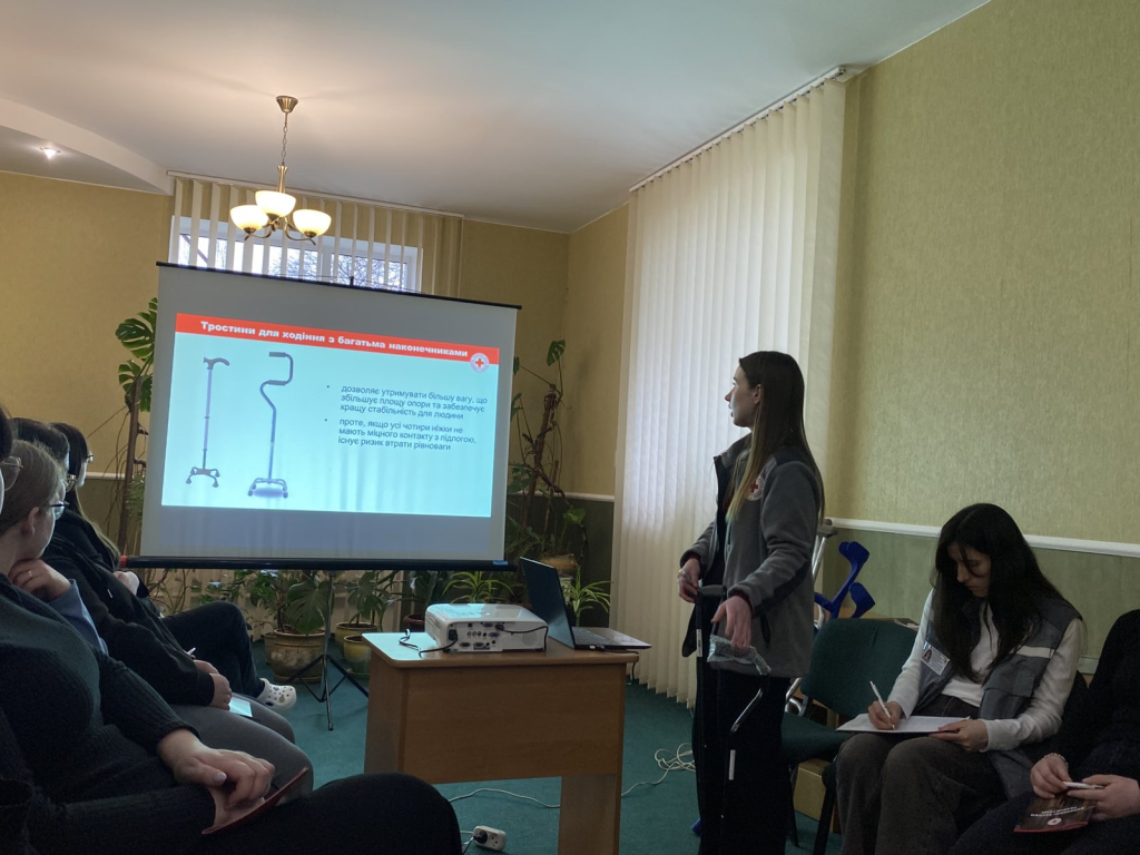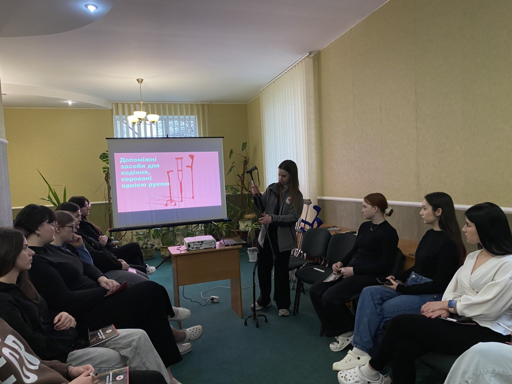 Сьогодні у Ківерцівському фаховому медичному коледжі відбувся тренінг «Допоміжні засоби реабілітації», який провела головний фахівець з освітньо-інформаційної роботи проєкту «Мобільні реабілітаційні команди» Волинської обласної організації Товариства Червоного Хреста України Ірина Пашківська.