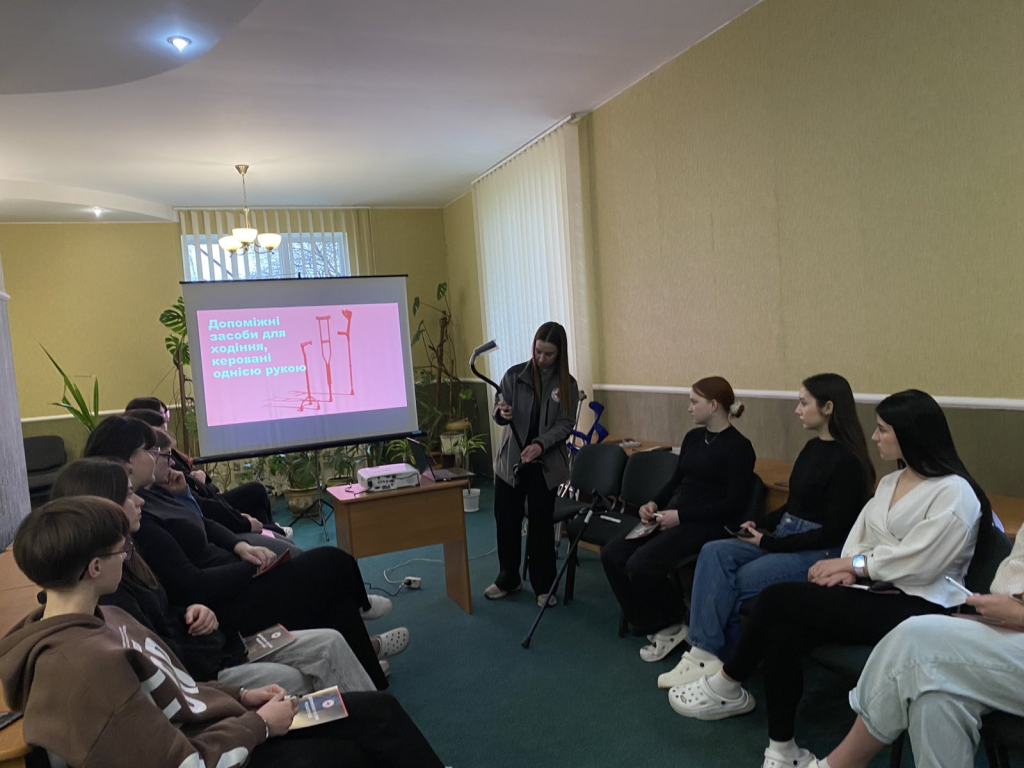 Практична частина заходу дала змогу здобувачам освіти не лише побачити допоміжні засоби реабілітації вживу, а й опанувати базові навички роботи з ними. Учасники мали можливість спробувати користуватися різними пристроями, відпрацювати елементи допомоги та отримати цінні рекомендації від фахівця пані Тетяни.